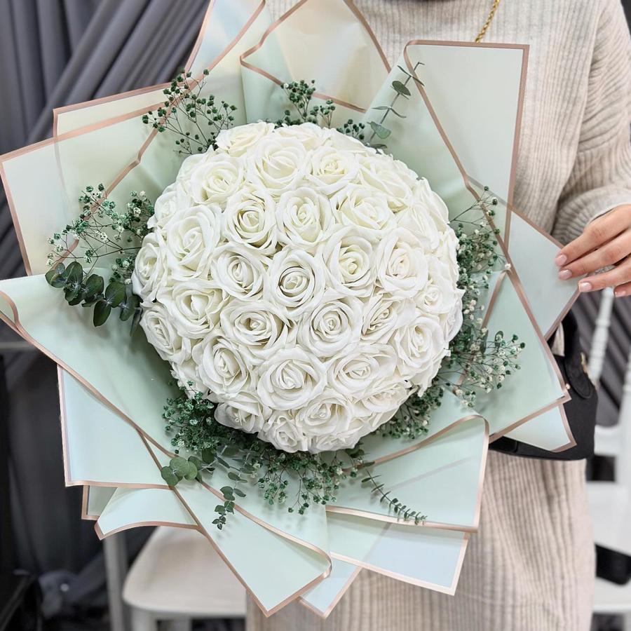 Yapay ve kuru çiçeklerden hazırlanmıştır . Elde görseldeki gibi tok ve dolu durur . Uzun ömürlüdür. 35 adet gül kullanılmıştır .