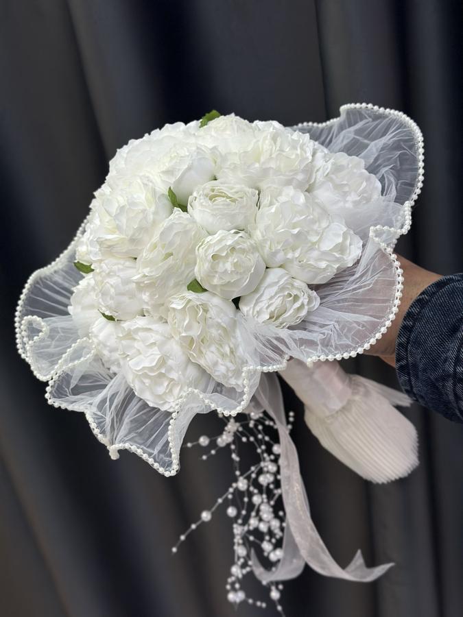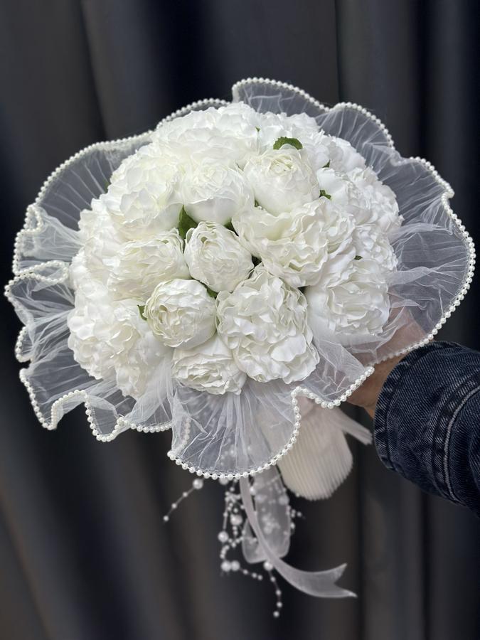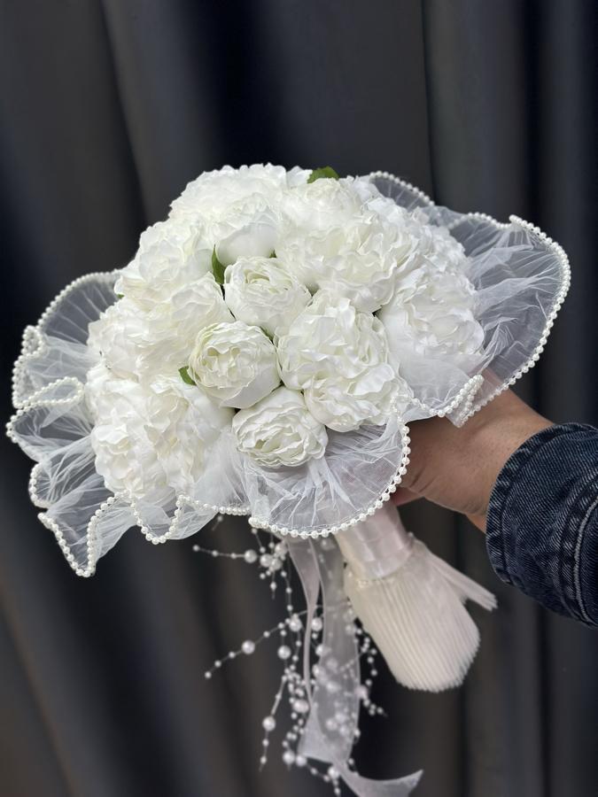 Kaliteli yapay şakayıklardan yapılmıştır . Ömür boyu kalıcıdır . Sararmaz ve solmaz . Damat yaka çiçeği hediyemizdir 🌸
