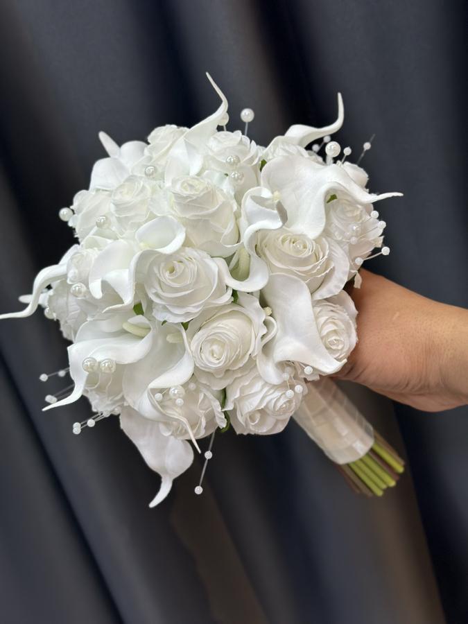 Kaliteli yapay çiçeklerle hazırlanmıştır ,uzun ömürlüdür . Damat yaka çiçeği hediyemizdir. Yaka çiçeği gelin çiçeğine uyumlu minik çiçeklerden yapılmaktadır.