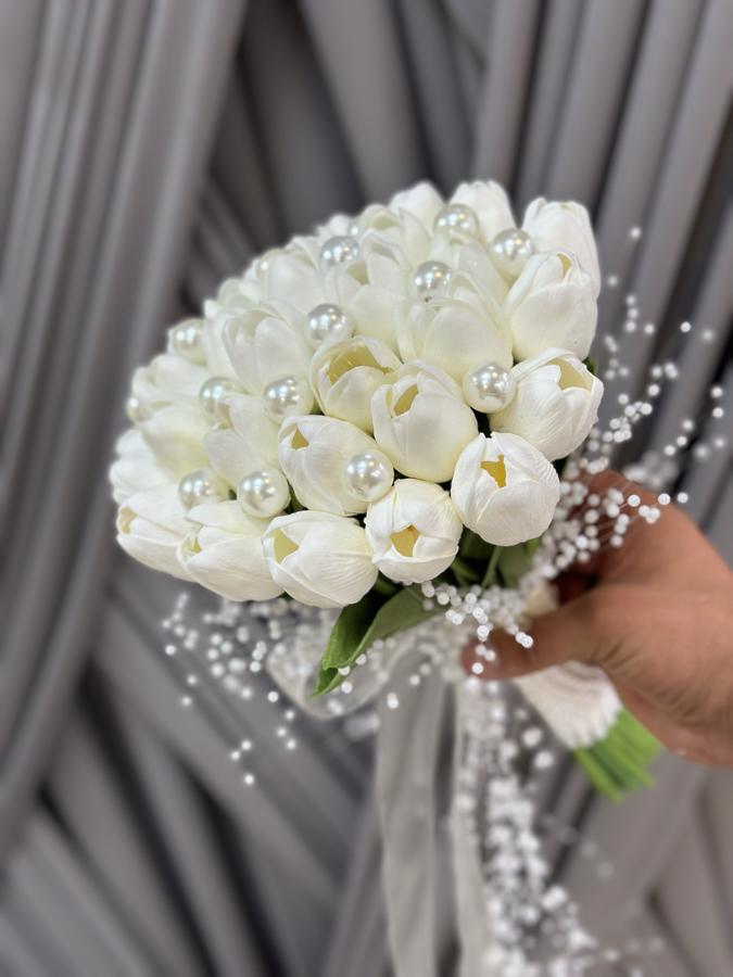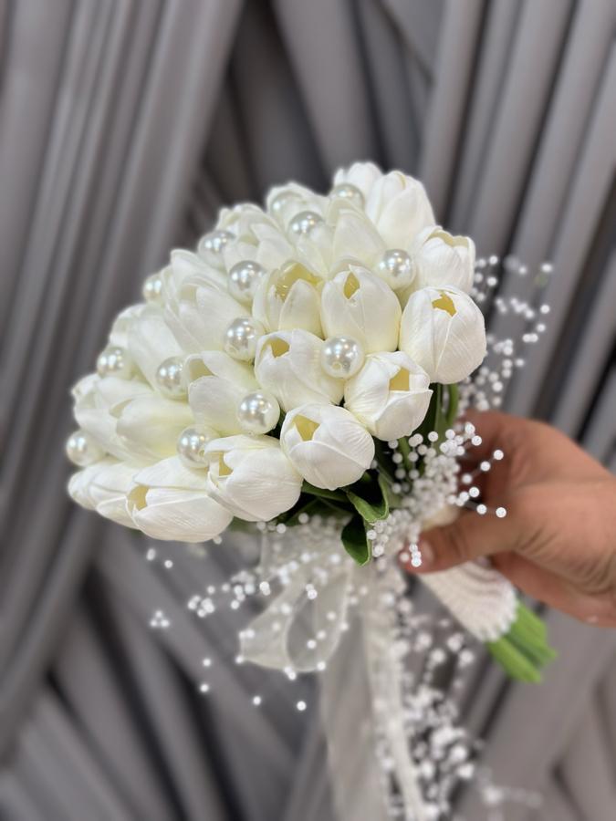 30 adet lale ile hazırlanmıştır . Damat yaka çiçeği hediyemizdir . Laleler ıslak dokulu oldukları için kalıcı değildir zamanla sararma yapmaktadır. Tarihinize 15-20 gün kala sipariş vermenizi öneririz.