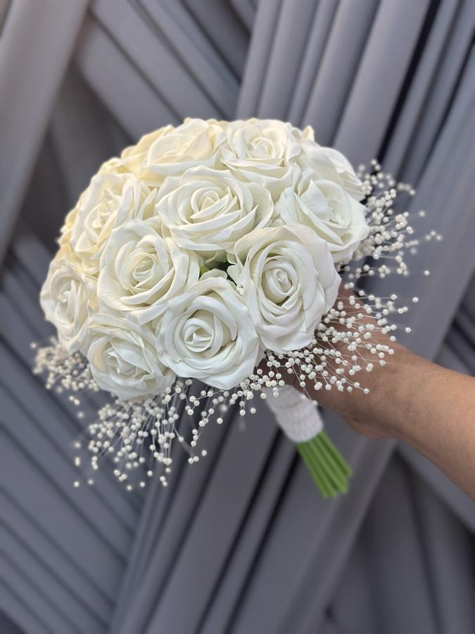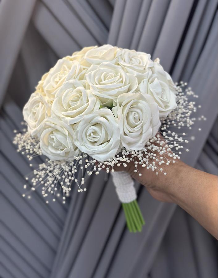 20 adet kadife dokulu yapay güllerden hazırlanmıştır . Ömür boyu kalıcıdır . Damat yaka çiçeği hediyemizdir.