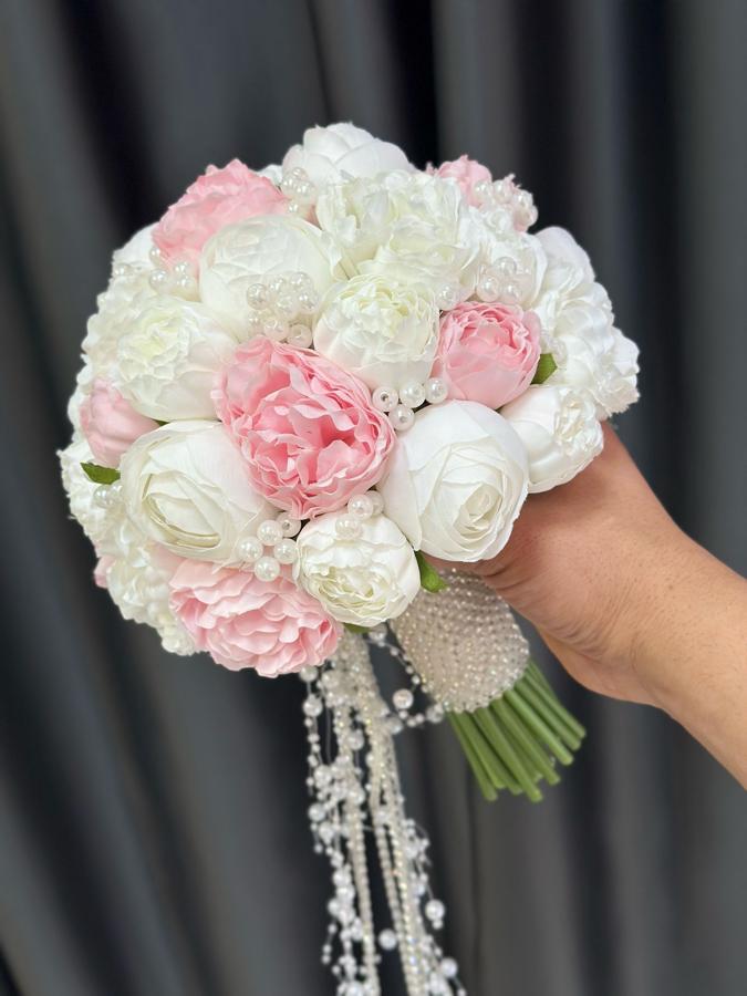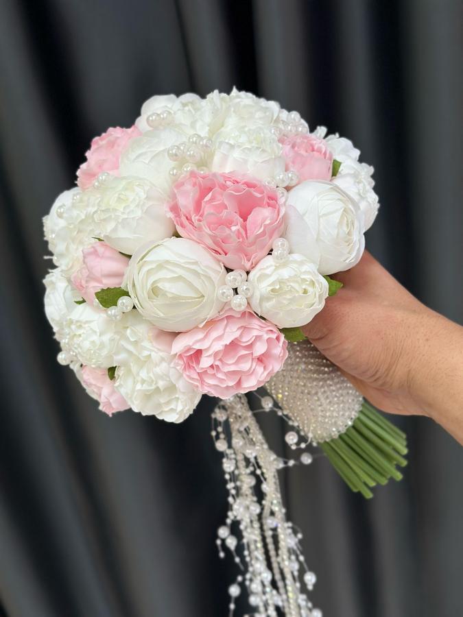Kaliteli yapay şakayıklardan yapılmıştır . Ömür boyu kalıcıdır . Damat yaka çiçeği hediyemizdir 🌸