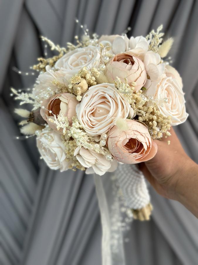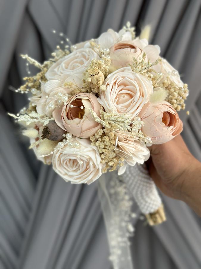 Yapay ve kuru çiçeklerden hazırlanmıştır . Elde görseldeki gibi tok ve dolu durur . Uzun ömürlüdür. Boyutu orta boydur .Damat yaka çiçeği hediyemizdir .