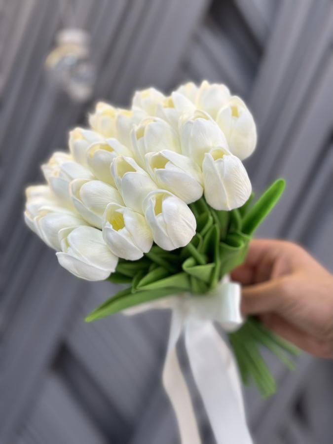 Bukette 24 adet ıslak lale vardır . Damat yaka çiçeği hediyemizdir . Islak dokulu olduğundan çiçekler zamanla sararma yapmaktadır. Tarihinize 15-20 gün kala sipariş verilmesi önerilir