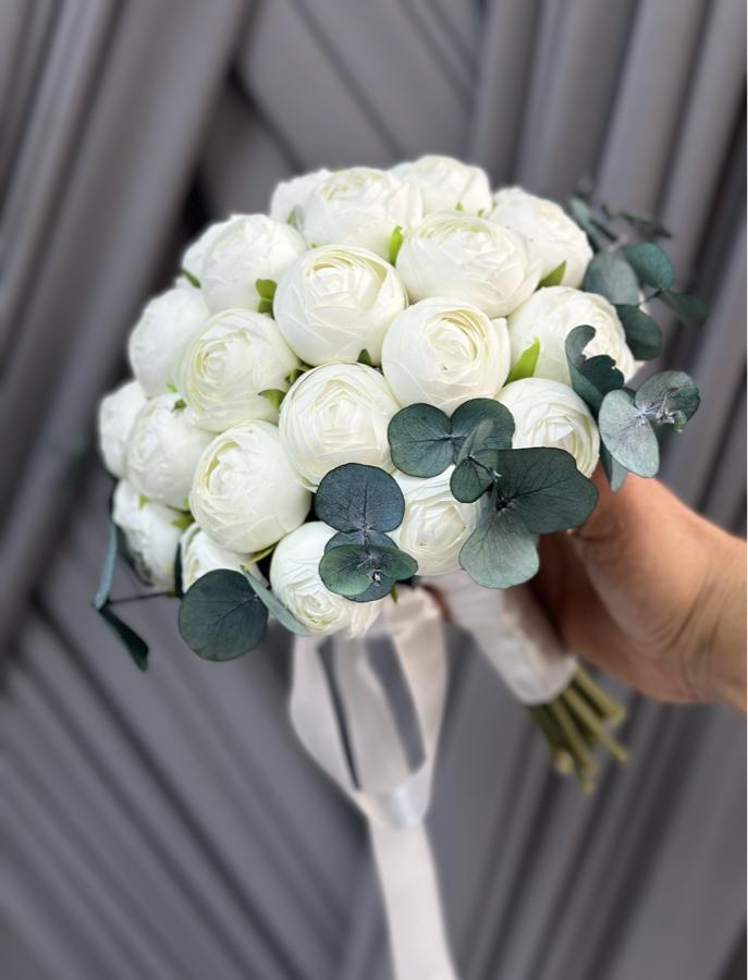 Yapay şakayık çiçeğinden yapılmıştır , şoklanmış gerçek okaliptuslarla hazırlanmıştır ,uzun ömürlüdür ,damat yaka çiçeği hediyemizdir