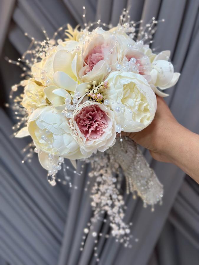 Yapay çiçeklerden yapılmıştır . Damat yaka çiçeği hediyemizdir .
