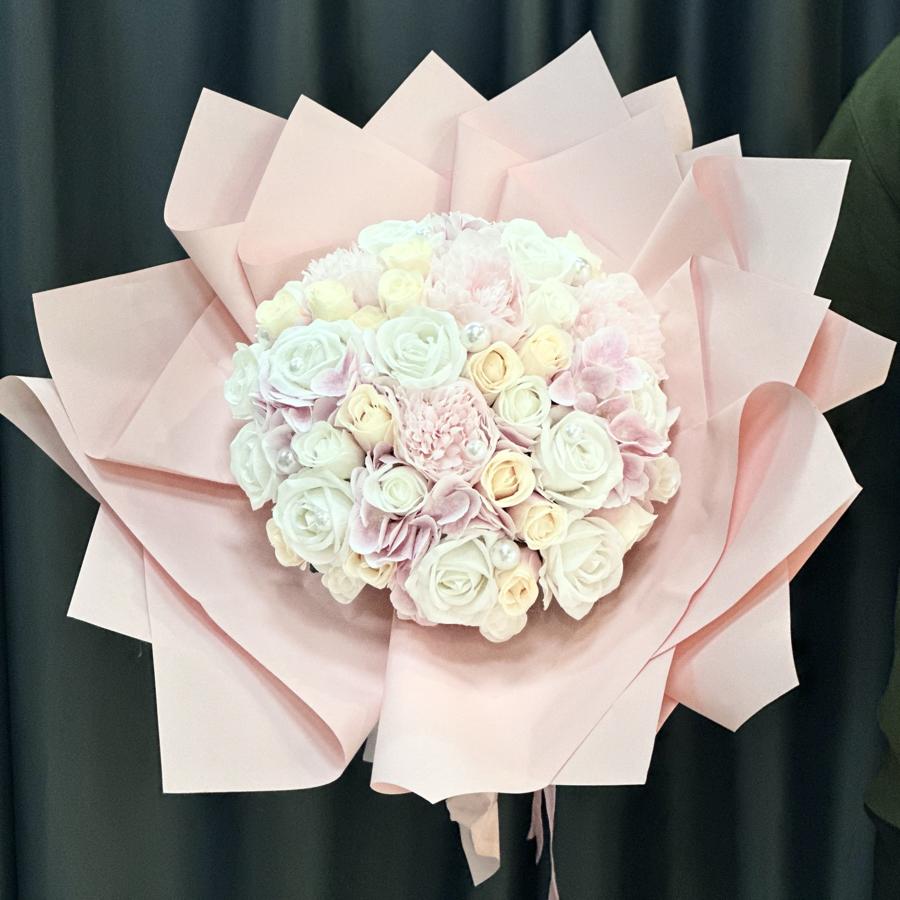 Tamamen yapay çiçeklerden hazırlanmıştır . Ömür boyu kalıcıdır .