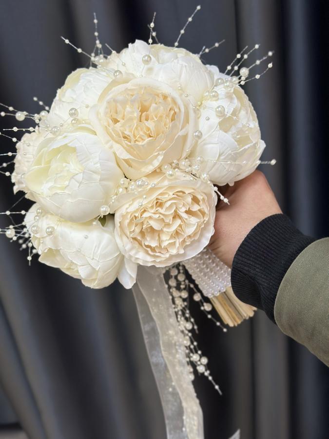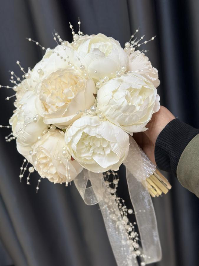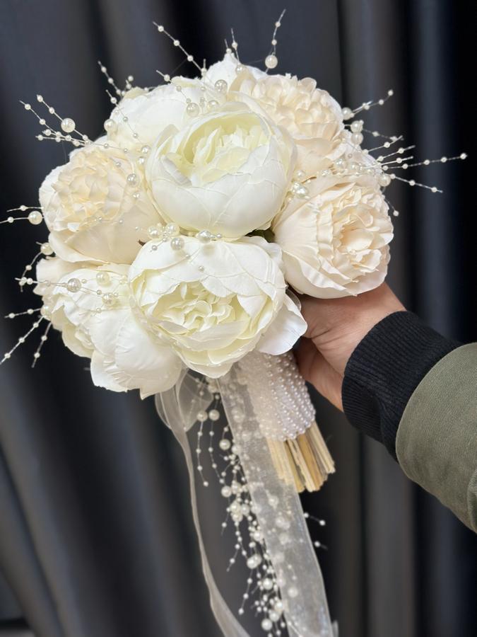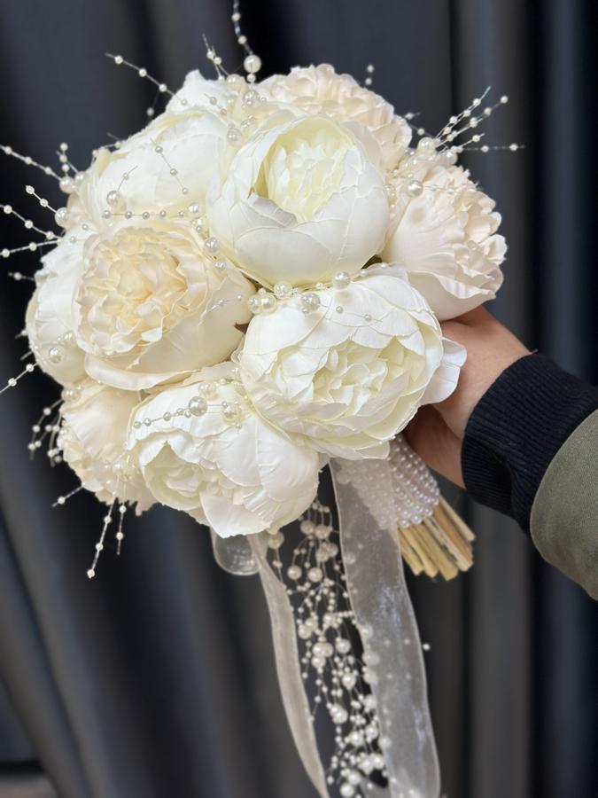 Kaliteli yapay şakayıklardan yapılmıştır . Ömür boyu kalıcıdır . Sararmaz ve solmaz . Damat yaka çiçeği hediyemizdir 🌸