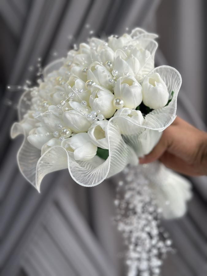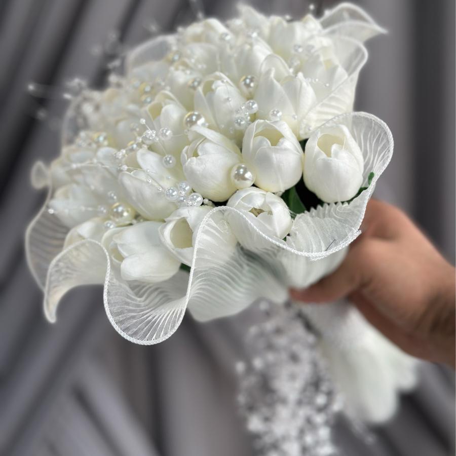 Bukette 25 adet ıslak lale vardır . Yanında Damat yaka çiçeği hediyemizdir . Laleler Islak dokulu olduğundan zamanla sararma yapmaktadırlar . Tarihinize 15-20 gün kala sipariş verilmesi önerilir .